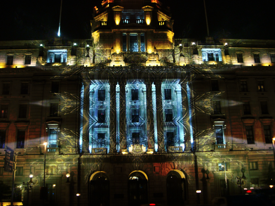 多组投影仪共同投影同一个整体画面,运用投影融合的先进技术,将天花板与地面作为投影屏幕。还可根据播放主题设置投影系统: